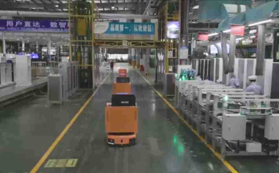 为车载冰箱物流配送打造的智能解决方案,,,,包含产中物流通过潜伏举升AMR搬运至线边,,,产后成品物流智能仓储,,流程包含产中物流智能齐套入库,,线边安灯叫料AMR智能配送至线边,,,成品入库、、、、出库,,,,通过无人堆高车机器人,,,,智能仓储管理替代人工作业管理,,实现更高存储、、、、更高效率、、、更具柔性化的解决方案。。